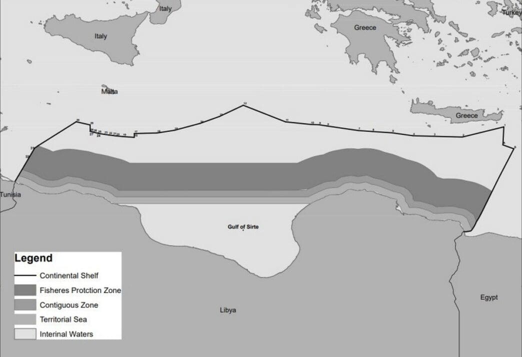 Με τη ρηματική διακοίνωση και τον χάρτη που τη συνοδεύει, η Λιβύη χαράσσει εξωτερικά όρια υφαλοκρηπίδας έως την Κρήτη βάζοντας στο στόχαστρο όχι μόνο την Ελλάδα αλλά και την Αίγυπτο.
